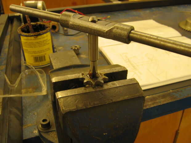 Con mis piñones (principalmente el piñón de la rueda) tuve que los jefes (la parte de la rueda dentada que sobresale hacia fuera) de la máquina. Esto requiere: