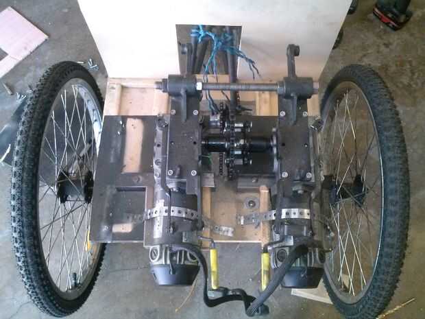 los motores están montados sobre una tabla que se adjunta a la moto por los soportes que lleva a cabo la cesta originalmente.