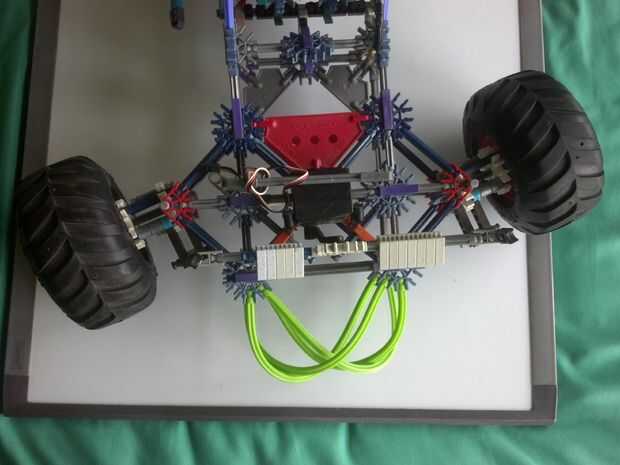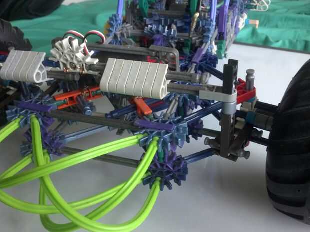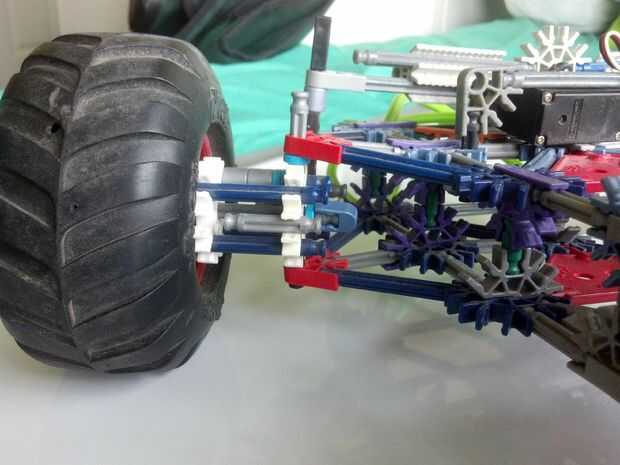 Otra cuestión señalaba las ruedas directamente. K'nex las piezas no vienen en muchos tamaños, y no quería preocuparse de este tema, hice los brazos de dirección ajustable. Permitir el ajuste del dedo del pie/divergencia y ayuda en señalar directamente las ruedas.