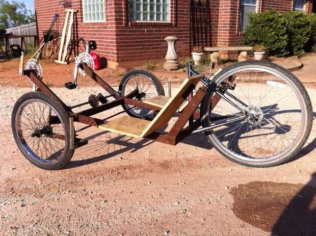 El proyecto comenzado cuando mi esposa se quejaba de que era difícil hablar mientras se conduce nuestro tándem vertical. Había construido varias reclinadas y quería construir un tándem reclinado, así que decidí construir un triciclo sociable (realmente se llama "sociables" en un lado por lados).