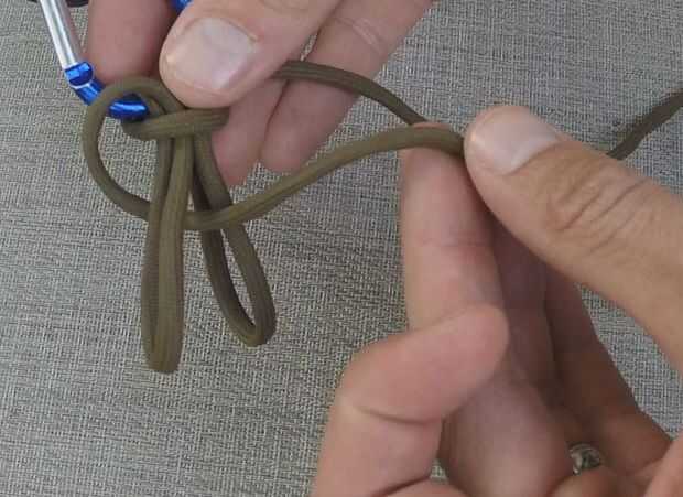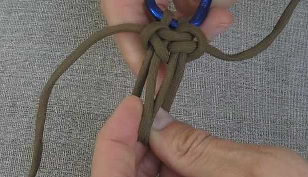 Ahora sólo repita la armadura, siempre a partir de "dejado atrás". Y otra vez... Cuando usted habrá sólo una pulgada de cuerda a cada lado, vaya al paso siguiente. Puede que necesite crujir los tejidos anteriores del norte hacia el llavero para darle un poco más espacio.