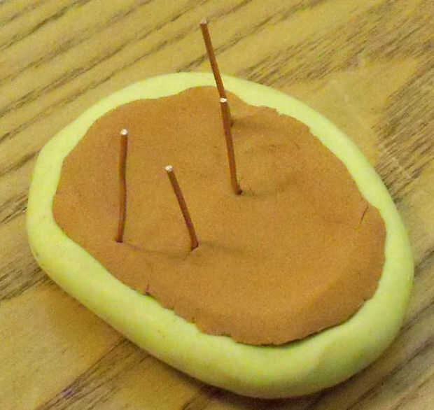 O aceite en tus manos un pequeño bálsamo para mantener la arcilla se pegue a la piel. Tomar algunos casero arcilla de cobre y rodillo o presione a una capa de al menos 1/8 pulgada (2-3 mm) de espesor. Suavemente Coloque hojas de arcilla en el molde y empuje suavemente la arcilla hacia todas las partes del molde. Yo uso un mango de cepillo de pintura de grasas para empujar la arcilla en pequeñas áreas. Intente mantener la arcilla del mismo grosor por todo el molde. Dejar de lado que se seque. Silicona es resistente al calor, por lo que puede acelerar secado ajustando el molde sobre una taza o vela caliente, calentamiento etc.. Puede intentar quitar el trilobite cuando todavía mojado, pero es difícil hacerlo sin agrietarse la arcilla moldeada. (Opcional, puede incrustar alambre de cobre en la arcilla: arena de cualquier capa de barniz o antimanchas. Doblar la punta del alambre y gire en la arcilla. Pensar la contracción, la arcilla se contrae sinters, pero no el cable.