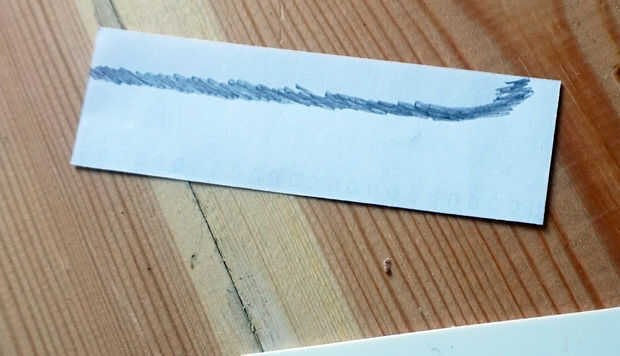 Abrazadera o cinta adhesiva las dos piezas entonces cortan cuidadosamente a lo largo de la plantilla. No es un tamaño exacto, pero hacer las esquinas redondeadas, agradable y suave. Mía puse en un pequeño vicio y lo había aserrado. Luego anotó la curva con una hoja de oficio y doblar suavemente hasta que se rompió... Con las dos piezas con abrazadera juntos, presentar el corte liso, he usado un archivo de media caña para alisar suavemente la curva. Lije los bordes lisos.
