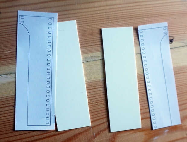 Corte las tiras de película. Frotar un lápiz sobre la parte posterior de la impresión siguiendo la guía de corte. Hacerlo también en un par de lugares donde las perforaciones. El lápiz actúa como papel carbón. Línea de la impresión y una de las piezas de plástico y pasar por encima de la impresión y las perforaciones que ha seleccionado. Esto transfiere la plantilla para el plástico. Hacer lo mismo con el otro tira y el plástico. Debe tener dos piezas, una imagen de espejo uno del otro.