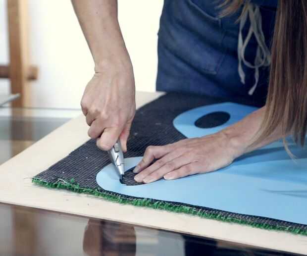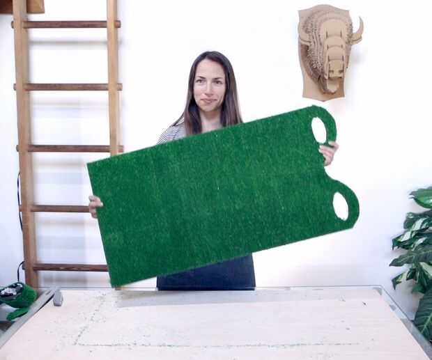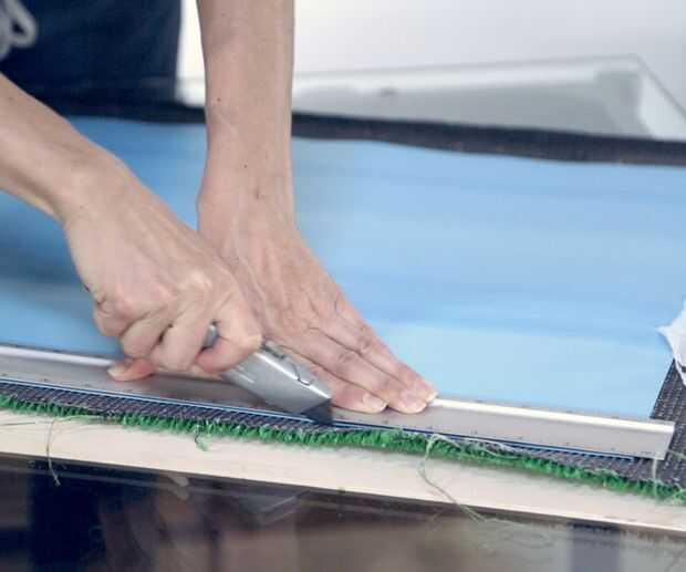 Luego, con el cortador y el borde recto, corte el césped astro sobrante de los bordes del trineo.