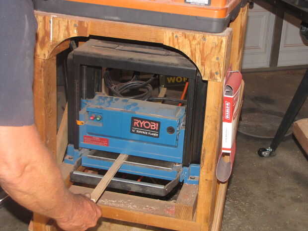 Medir el calibre de ingletes y corte dos pedazos de madera dura a la misma anchura (dar o tomar unos thousanths). El mio es ¾", que es un tamaño muy común de la ranura. He utilizado roble podrido de palets para la madera dura. Estos pedazos deben tener la longitud completa de la tabla. También, los plano hacia abajo para que no sobresalgan por encima de la mesa. Utilice un borde recto para asegurarse de que ha sido planeado por bastante. Lije los bordes afilados también.