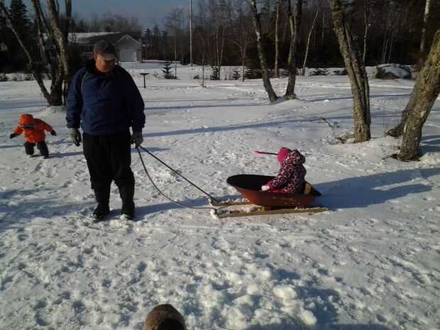 ¿qué hacer después de una tormenta de nieve? con gemelos de dos años y sin patín, bien crees que puedo conducir a walmart y gastar $50 en algo plástico, sabes que se rompera en unos pocos días,! o en el cobertizo con la carretilla de rueda roto que sabes que no lo arreglamos y algunos pedazos de madera de la cubierta construida en el verano. Dos horas más tarde salir con el trineo que costará $3 por unos tornillos y la electricidad para el uso de Sierra de inglete... bueno esto fue mi primera si lo siento instructable su poco débil o, mi próximo será completo paso a paso, gracias