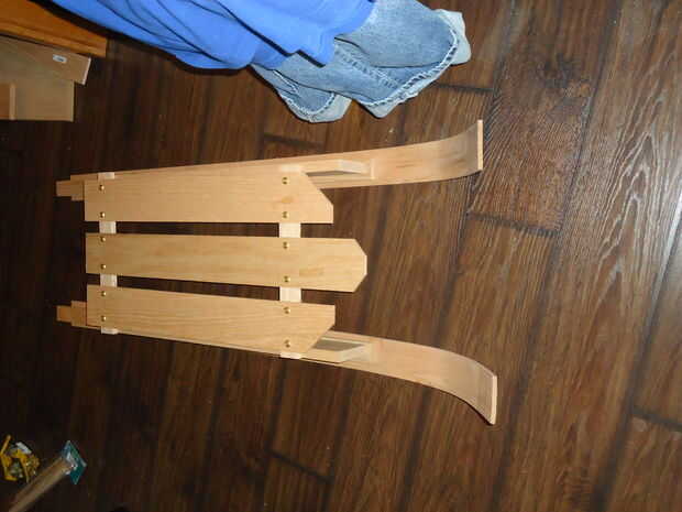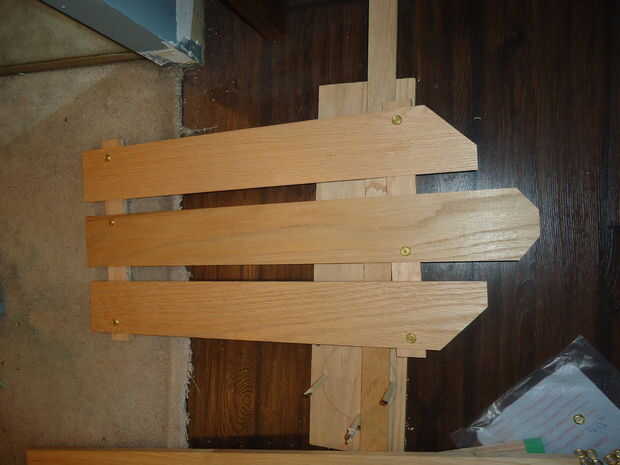 Cortar los travesaños de la 1 ½ "x ½" x 48" roble usando las tablas de la cubierta para determinar el ancho que necesitaba. Quería darle un toque retro barco así que utiliza en su mayoría tornillos de latón y en la cubierta agregar arandelas de acabado de bronce. Esto no sólo le dio una estética que yo quería pero puesto que la cubierta era sólo ¼" yo no quiero avellanado de los tornillos. Con las arandelas de acabado se consigue el efecto de avellanado sin necesidad de debilitar la madera ya delgada. Yo sólo atornillado en la parte delantera y atrás miembros de la cruzados como pensé que se vería demasiado ocupado con otra línea de tornillos. Todavía coloqué a un travesaño debajo de la media para la fuerza. Se une a la canalización vertical, pero no la cubierta.