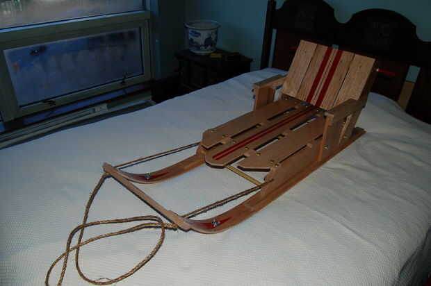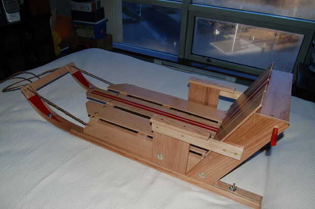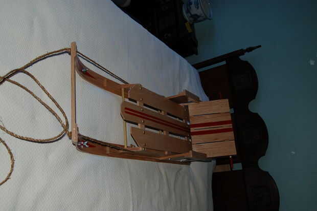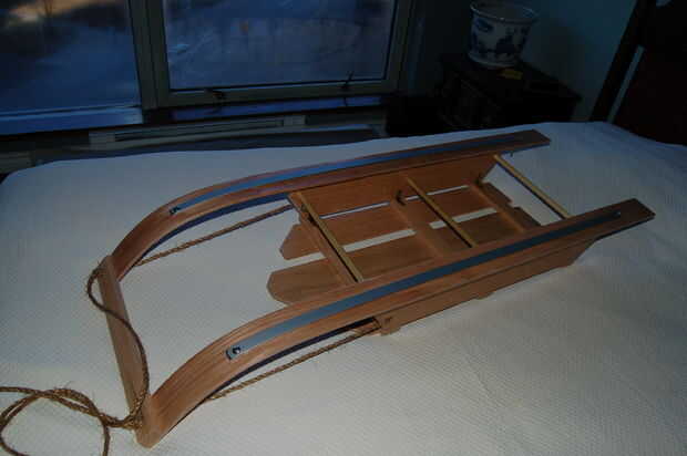 Una adición final que hice ya que es un "trineo de ciudad", he añadido una cinta de acción de la barra de aluminio bajo los rieles de madera. Estas se celebran con tuercas de mariposa por lo que puede sustituirse si desgastan. En la ciudad que tienden a tener que cruzar las aceras de cemento cubren con arena y sal, así como asfaltados caminos para llegar a las colinas de buen. Esta tira de metal se mantenga segura la madera del suelo y protegerlo de ser desgastadas. Yo contador hundido el tornillo en la parte posterior de la estación de esquí de modo que el tornillo estaba aún con el aluminio para evitar que puedan quedar atrapados en cosas. En el frente del que este no era necesario como el tornillo está en la curva de la estación de esquí. Existen arandelas en la parte superior de los rieles para proteger la madera.