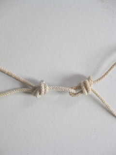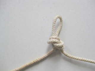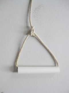 Corte tres piezas de PVC 5" largo y limpiar los extremos cortados. Estas son las manijas de la tira. Alimentar cada uno de los extremos de las cuerdas a través de una manija y atar apagado usando un nudo cuadrado.