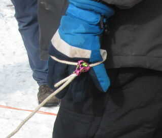 Perfore un orificio de 3/8" en la cubierta de madera contrachapada, centrado, aproximadamente 2" de la parte delantera. Esto es donde se une la cuerda de tracción. Cortar la cuerda en un 7' pedazo de pieza y 5'. Fusible de los extremos cortados de las cuerdas con un partido para evitar que se deshilache más adelante. Alimentación uno de los extremos de 7' pieza a través del orificio de 3/8" en la cubierta y asegúrela utilizando dos medios nudos. Unos 5' el agujero de la cubierta de atar un lazo simple. Alimentación 5' pedazo de cuerda a través del lazo. En medio de 5' piezas hacer otro bucle. Esto evitará de desplazamiento izquierda o derecha.