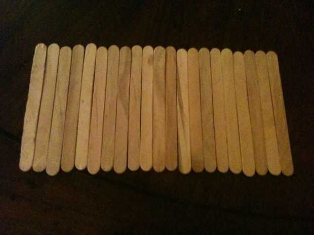 esto es fácil de construir y sólo utiliza 5 palitos. Explota cuando golpea el suelo. Un popsicle stick mi descanso pero generalmente no sucede.Paso 1: Esta es la parte fácil Solo mira la imagen.Paso 2: Esto es cuando se pone duro Asegúrese de constan