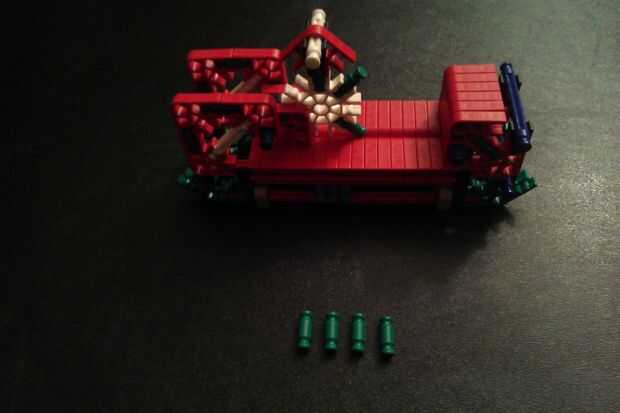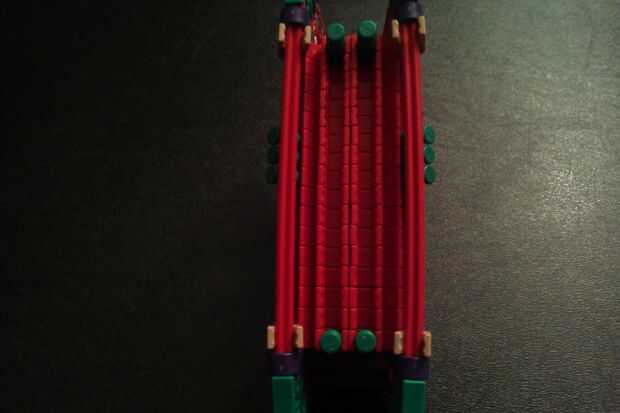 Colocar dos barras verdes al frente y la parte posterior de la parte inferior del trineo.