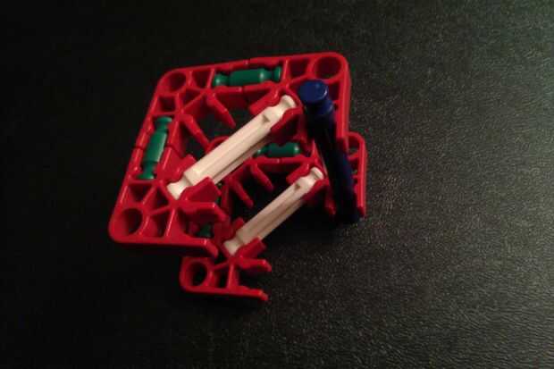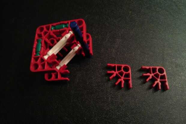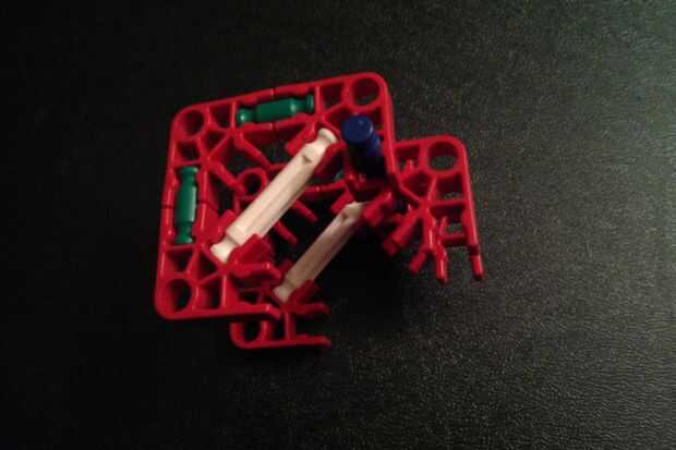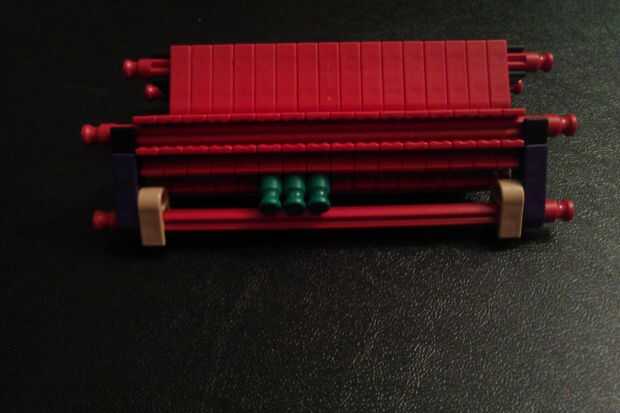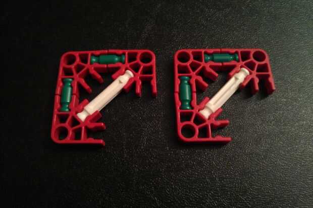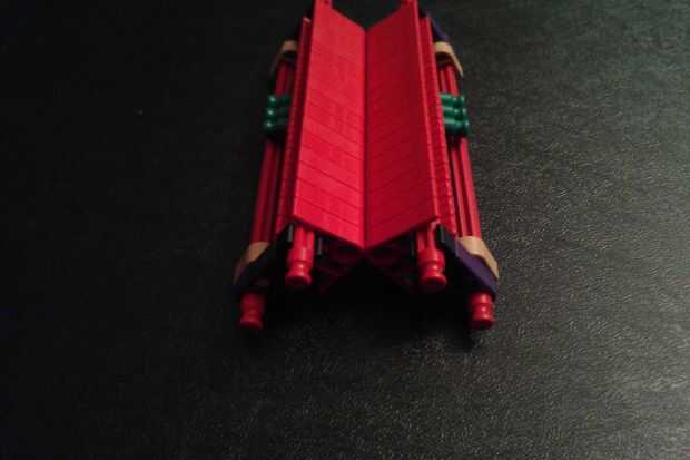 Construir las dos piezas que se muestra en las fotos y como se muestra con una varilla azul. A continuación, agregue dos más conectores rojo en la barra azul y conecte la pieza completa a las otras dos mitades del trineo.