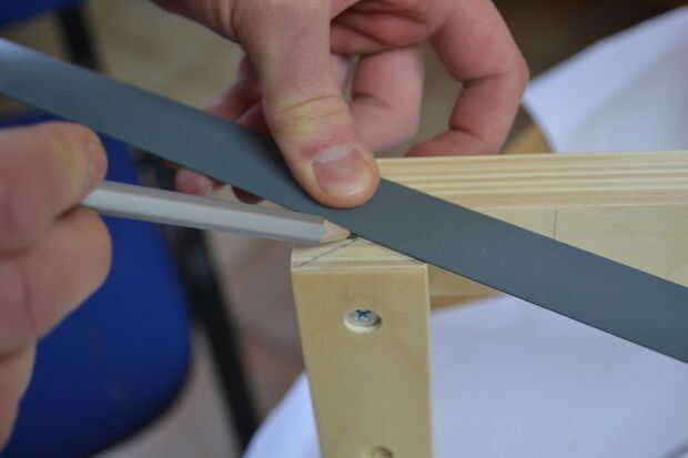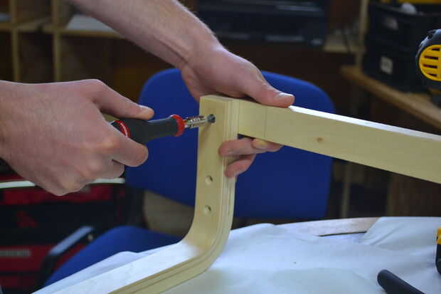 Una vez que los rieles y el asiento derecho, tendrá dos partes izquierda. Cortar a la longitud adecuada (que se cortan igual a la distancia entre los rieles frontales. Tornillos, cola y clavijas de madera para que sea super fuerte.