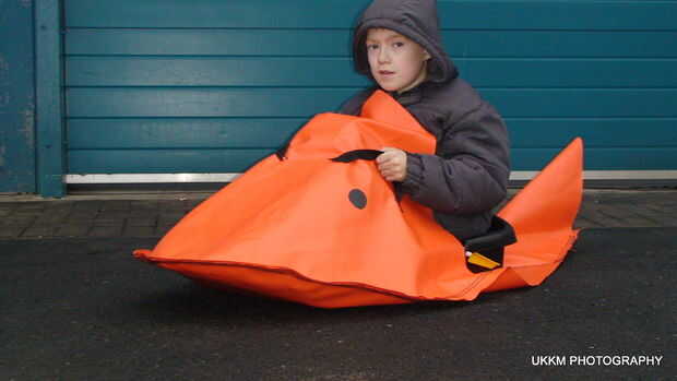 Este es uno de una serie de divertidos trineos hice por algunos pvc de coser juntos. Llamé a esta versión "patines" como los peces de skate, también hacer una "nieve slippa" en forma de zapatillas llevo alrededor de la casa y "zapatos de la nieve" como un zapato normal!