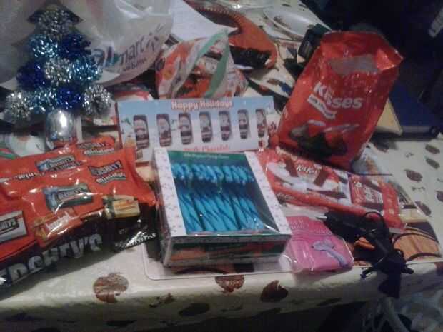 · Otros dulces (usé miniaturas, besos, Hershey de Hershey Santa barras y chocolates Santa envueltas en papel aluminio)