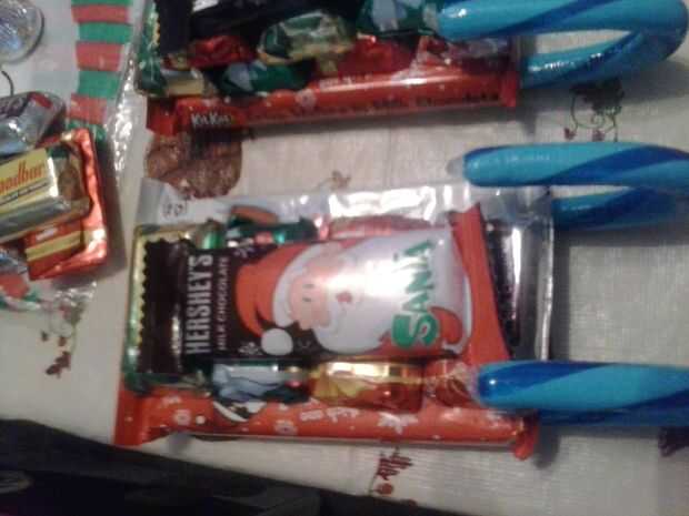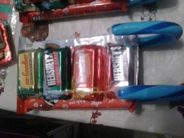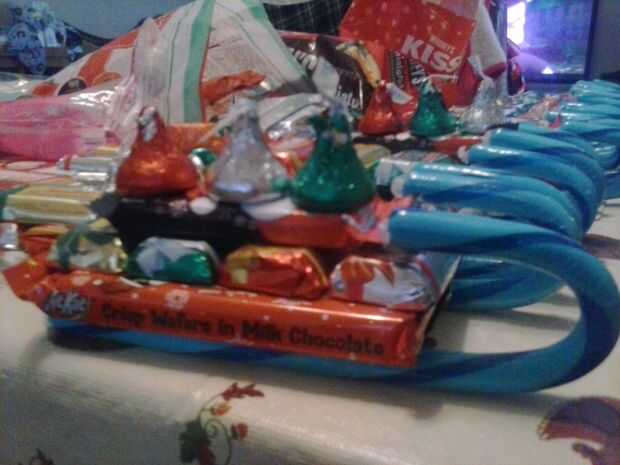Encontré estos increíbles envueltas en papel aluminio Santa Claus chocolates que voy a intentar pegar a la parte delantera del trineo.