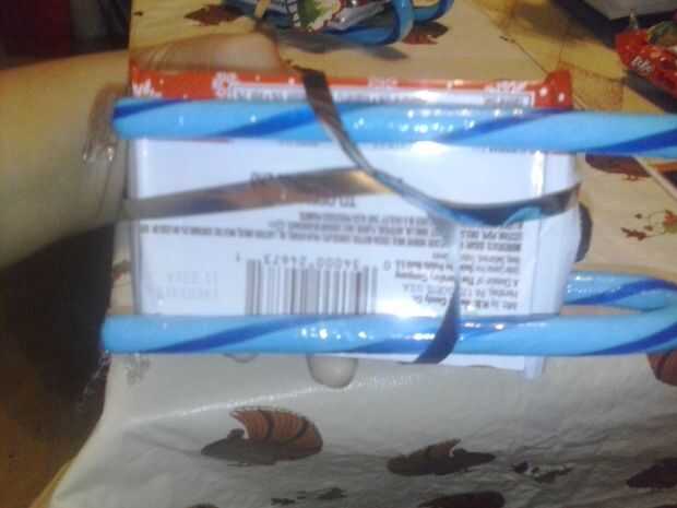 Añadir tu cinta envolviendo todo el ancho, bajo, cruce, luego llevar el largo del trineo. (ver fotos)