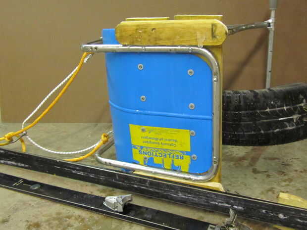 recientemente consiguió un segundo perro husky y necesitaba una manera de entrenar los perros como un equipo de una manera segura y divertida. Skijoring es una opción, aunque tengo preocupaciones por la seguridad de mí mismo y a los perros. Soy incapaz de usar senderos de campo tradicionales con perros (esquiadores de campo pueden ser re-presentando) así que tengo que utilizar la amplia red de senderos de moto de nieve. Estos senderos, por supuesto, son objeto de trata por muchos trineos motorizados, que significa que debo tener muy buen control de mis perros y mi auto para evitar accidentes.Solución: Un kicksled lo suficientemente robustos para ser tirados por unos perros y ser manejada por un hombre de 190 libras. La génesis de esta idea vino de un compañero Instructabler que tuvo la idea de genio de la creación de un kicksled utilizando esquís alpino antigua con sus fijaciones originales. Yo simplemente amplió su idea.