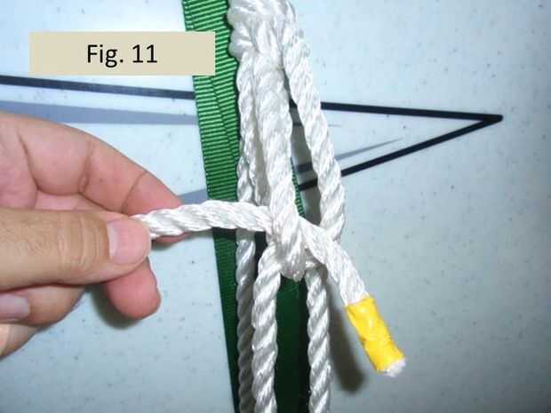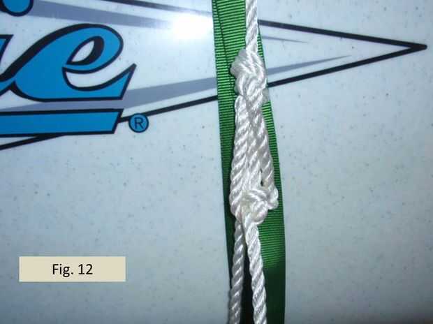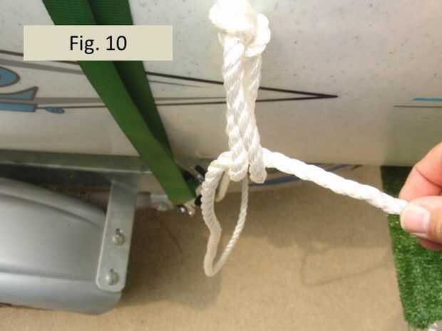 Figura 10 muestra la primera etapa de formar el enganche de garda modificado. El trabajo final es conducido desde el nudo de as de guía hacia abajo alrededor del remolque y luego al nudo as de guía doble para ser alimentados a través de ambos lazos de cuerda. Nuestro plan para completar la htich de garda es el siguiente. Antes de dirigir el trabajo final hasta el trailer una segunda vez para ser atado apagado como ocurre en un enganche de camioneros convencional, primero te alimentan y envolver la línea a través del as de guía una vez más. Pero en lugar de alimentación a través de ambos lazos como se muestra en la figura 10, la segunda vez llevaremos el extremo entre los lazos de dos as de guía, como se muestra en la figura 11.