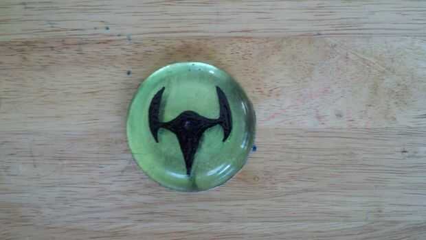 a continuación llegó el momento de añadir el símbolo de la llave. (Nota: es muy difícil para mí hacer un seguimiento de qué tiempo debo escribir esto ' ible en.) Originalmente había planeado el bastidor de la resina de la capa e insertar un símbolo de llave dentro, usé algunos vinilo barato sin embargo y el calor de la reacción química de la resina causado el símbolo de rizar. Así que esto fue un error, y he decidido replantear todo el asunto y solo pintar el símbolo de una llave en la parte superior.