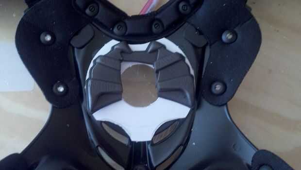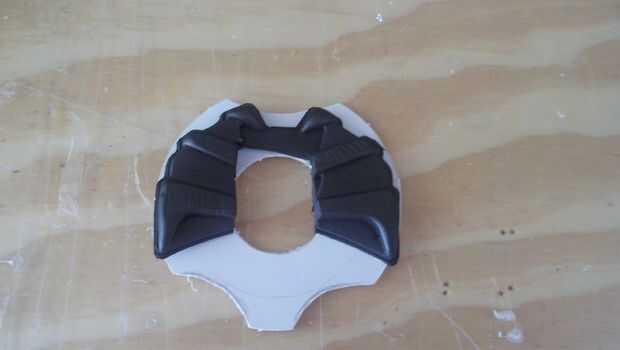 A continuación cortar a una especie de anillo de retención de algún plástico de hoja y pegado a algunas de la espuma que tiró de la placa del pecho anterior. El anillo de retención ayudará a sostener el símbolo en su lugar ya que no tenía la previsión para emitir a algún tipo de canto en el borde del símbolo para ello.
