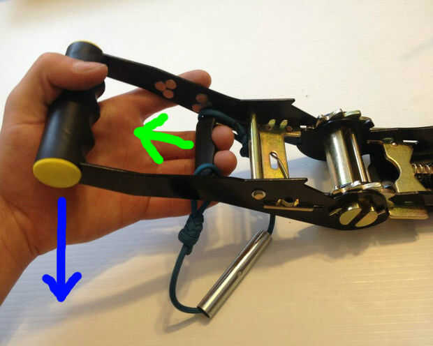 Este tutorial mostrará cómo hacer una palanca que hará más fácil y más fácil de derribar tu slackline. Las imágenes 2 y 3 ilustran por qué esta actualización le ayudará. Me dio un poco la cremallera cuando arrancó lo con este mango adicional, mientras que sólo tenía una pequeña ampolla de sangre que quisiera prevenir futuras lesiones.