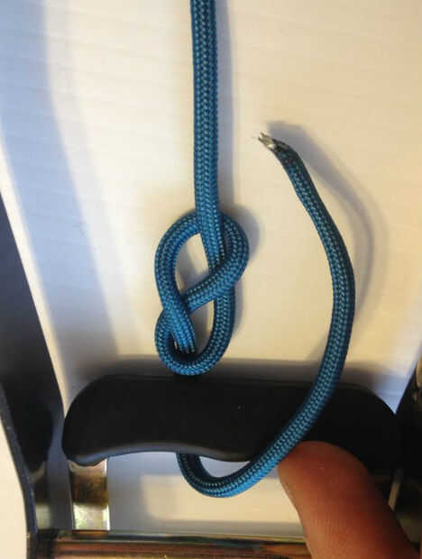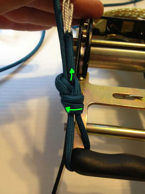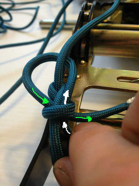 Para conectar el mango extra para el mecanismo de bloqueo que se necesita atar algunos paracord alrededor de él. Encontré que la "Figura 8 Loop" trabaja bien aquí, lo uso cuando sigo subiendo por lo que debe ser mucho fuerte.