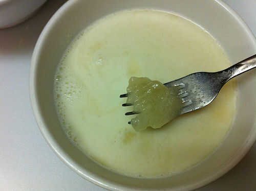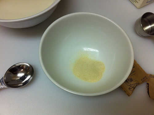Vierta la mezcla en recipientes individuales y refrigere un par de horas hasta que se solidifica la panna cotta.