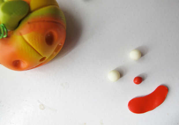 Herramientas para crear tus calabazas expresión facial, líneas de calabaza y textura. Utilice brillan en la oscura arcilla de la arcilla de ojos, rojo para la nariz y la boca. Inserte su soporte de cable naranja en la parte superior de la calabaza.