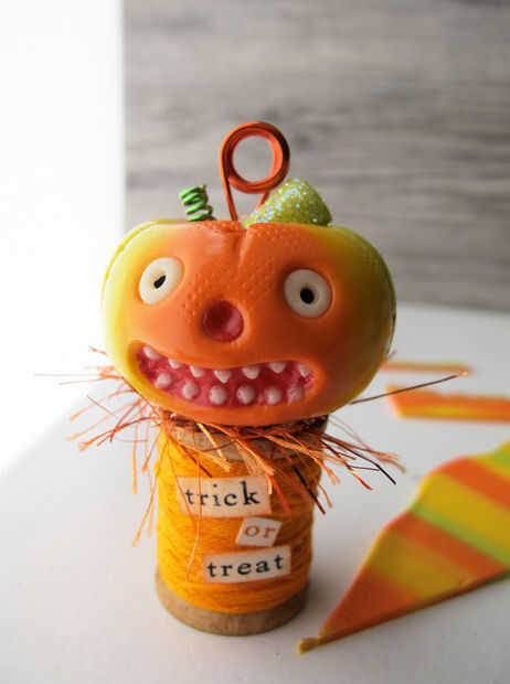 Una forma de forma de calabaza de 1" con restos de arcilla para crear el cuerpo del rodillo.