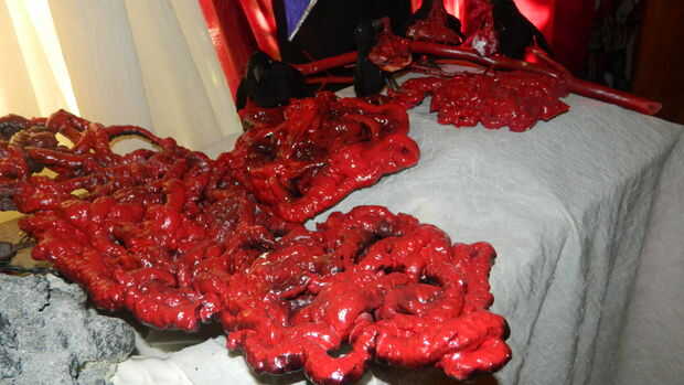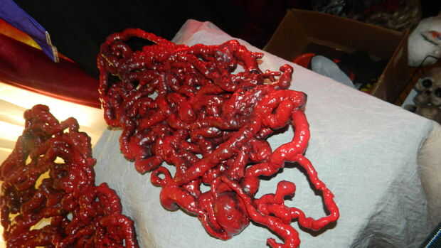 Esto fue/es un simple y muy barato prop(s) de Halloween que dará una sacudida eléctrica cada uno!!Acabo de ir a la tienda de 99 centavos compró algunos barato buscando caucho cortado brazos y pintado con pintura acrílica. Una vez seco enrollado alred