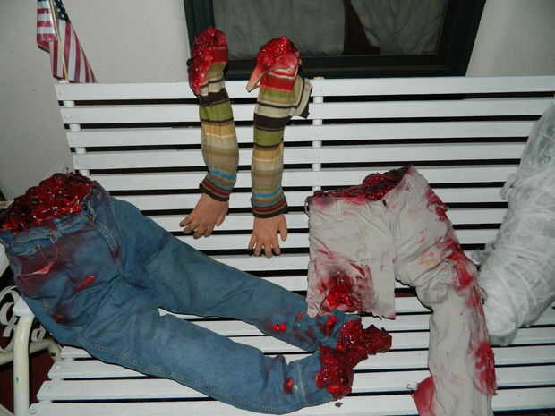 Utilizando las mismas técnicas que usted puede crear fácilmente cortado extremidades y partes del cuerpo. Simplemente rellene la ropa y añadir agallas/gore donde nunca le parezca.
