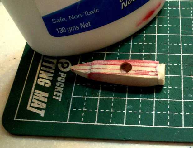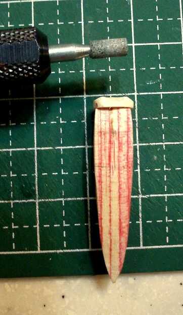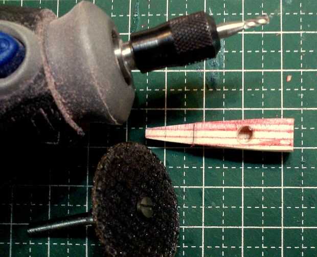 La forma cónica del fuselaje fue tallada usando un accesorio de lijadora de tambor en una herramienta de la moto de Dremel 3000. El agujero de la cabina fue perforado con una #125 cortador de alta velocidad de bits para el agujero piloto y acabó con un accesorio de corte de alta velocidad #193 en una herramienta de moto MiniMite.
