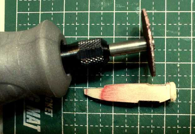 Las ranuras fueron talladas para las alas inferiores y medias utilizando un accesorio de rueda de corte normal en una herramienta de moto MiniMite.