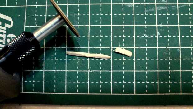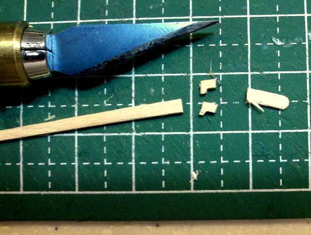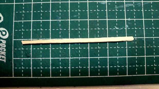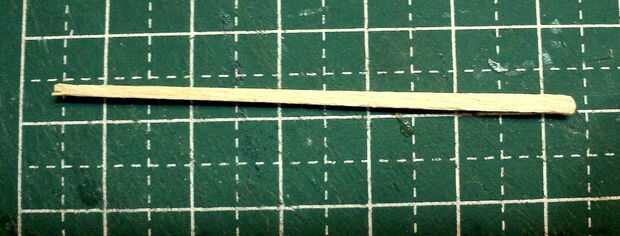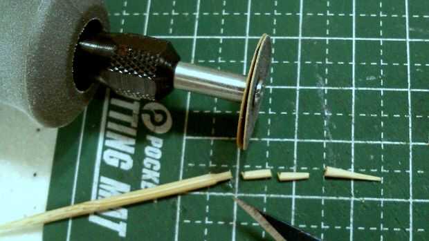 El propulsor fue tallado en un ángulo de un solo palillo de dientes utilizando un accesorio de la lijadora de disco fino. La longitud y forma del apoyo fue modelado después de los planos del paso 2.