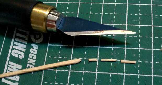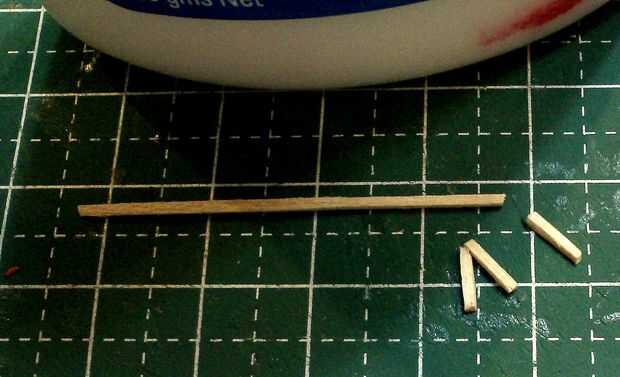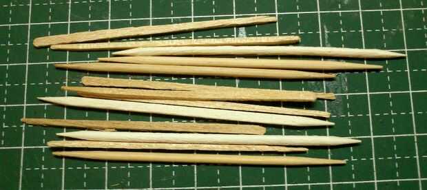 Los patines de cola y el ala fueron enarenados palillos de dientes regulares. La longitud de los patines de cola y ala fueron inspirado en las ilustraciones y esquemas en el paso 2 de este instructivo.