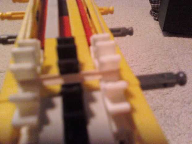 5. Añadir 2 o 3 pequeñas ligas bajo las armas, donde están las barras blancas.