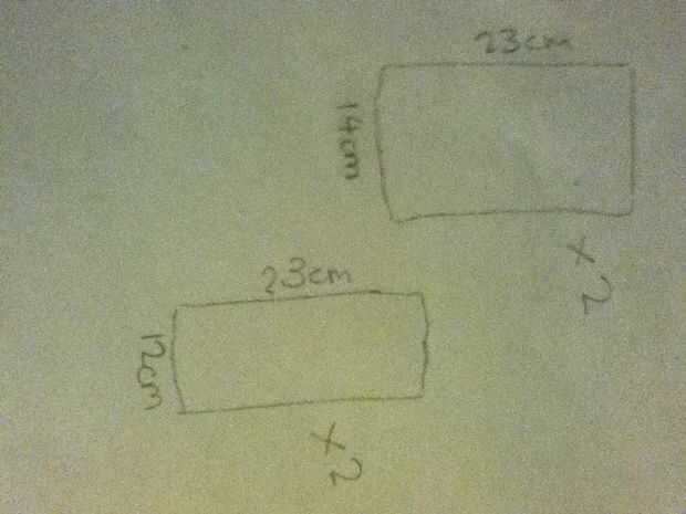 dibujaba las formas que usted necesite, 2 plazas de 23x24cm para la guarnición, 2 rectángulos de 23x14cm para los rectángulos 23x12cm exterior y 2 para el interior.
