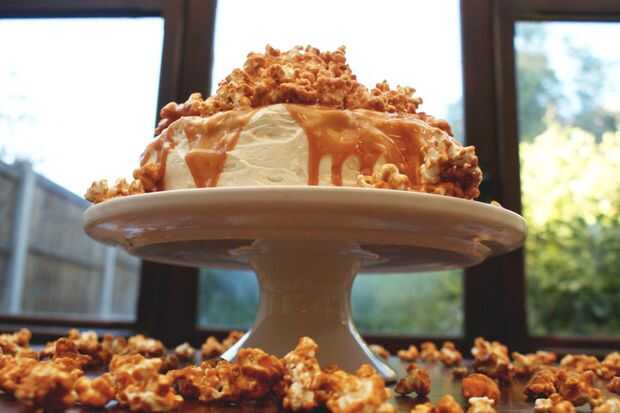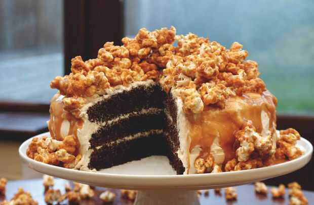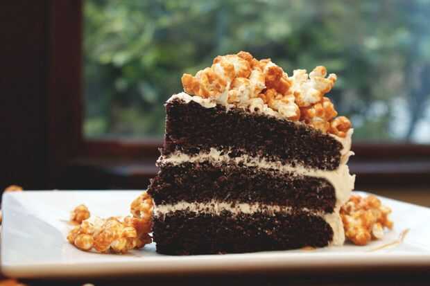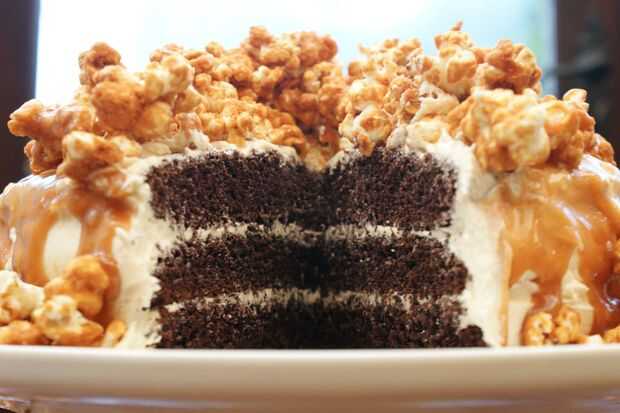 Triple capa de pastel de Chocolate con crema de caramelo salado y palomitas de maíz (6 / 6 paso)