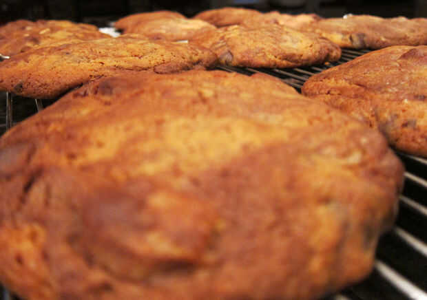 Dejarlas en la bandeja para hornear por un momento se enfríe un poco antes de transferirlas a una rejilla para enfriar.