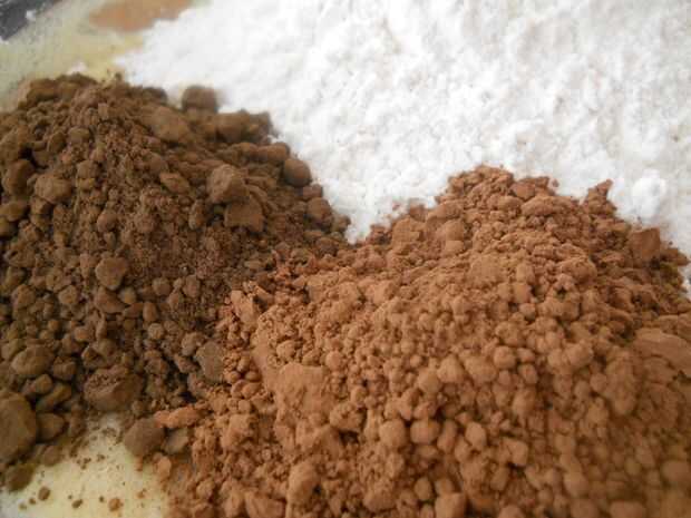 4. Mezclar en la harina y el cacao hasta empezar a combinar