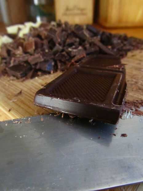 En primer lugar, picamos todo el chocolate en trozos pequeños. Podría utilizar chips de chocolate en su lugar para hacer tu vida más fácil, pero me gusta la irregularidad de mano picada pedazos y la forma de que las virutas de callejeros hacen su camino a través de la masa para galletas, separarse chocolate a través de cada bocado.