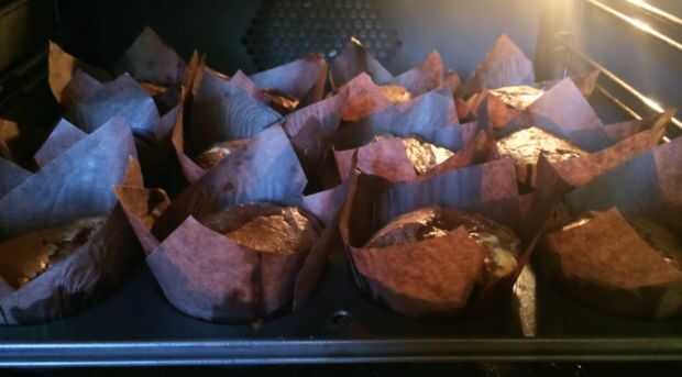 Vierta la mitad de la masa en casos de muffin y agregar la ganache de relleno antes de cubrirlo con la masa restante. Hornear en un horno a 180 grados por 15-20 minutos. Dejar enfriar sobre una rejilla por cable.
