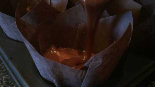 Triple Chocolate Chunk Muffins con centro de Ganache de (3 / 5 paso)