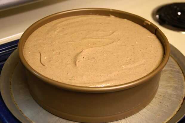 Vierta el relleno sobre la corteza y suavemente la golpe en el mostrador para sacar cualquier burbuja de aire. Mantener el horno a 325 cueza al horno 1 hora hasta que cuaje. Luego apague el horno y dejar el cheesecake sentarse una hora en el horno, sin abrirlo, que esto ayudará a evitar que se quiebren.