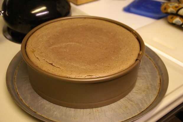 Cuando 2 horas son hacia arriba Retire el cheesecake del horno. Pase un cuchillo fino alrededor del borde de la cacerola que ayudará a prevenir agrietarse demasiado. Dejar enfriar totalmente sobre una rejilla de alambre o una placa de horno. Cubra sin apretar y refrigere durante la noche.