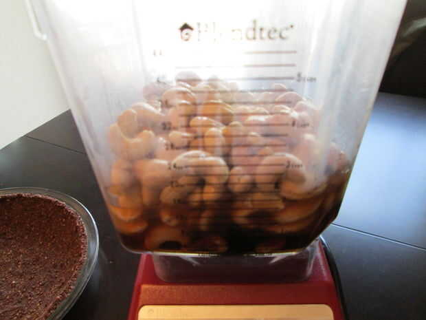 Salga de la licuadora y agregar nueces de la India, agave, vainilla y 1/4 de taza de agua. Mezcla hasta que esté cremosa.