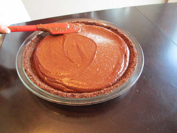 Utilice la espátula para alisar la mezcla hasta el borde de la corteza.